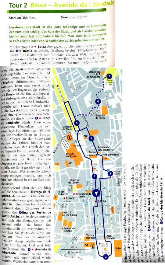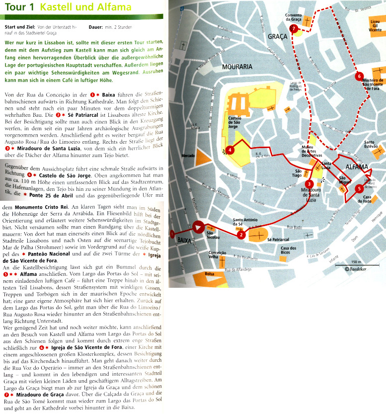 >2:00h je Tour | zu Fuß, Elevador, Carris, Bus | Tour 1, Tour 2, Tour 3 gemäß Baedeker